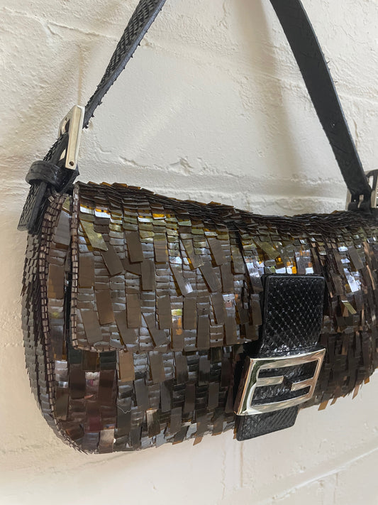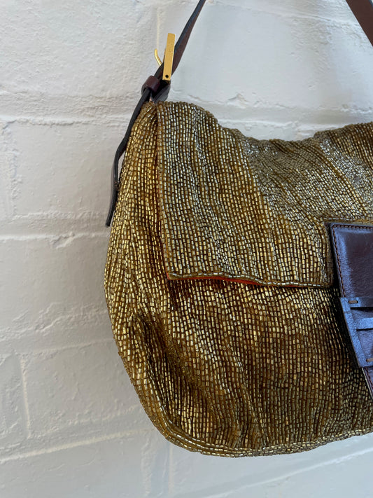 Fendi FF Zucchino Mini Mamma Baguette in Gold
