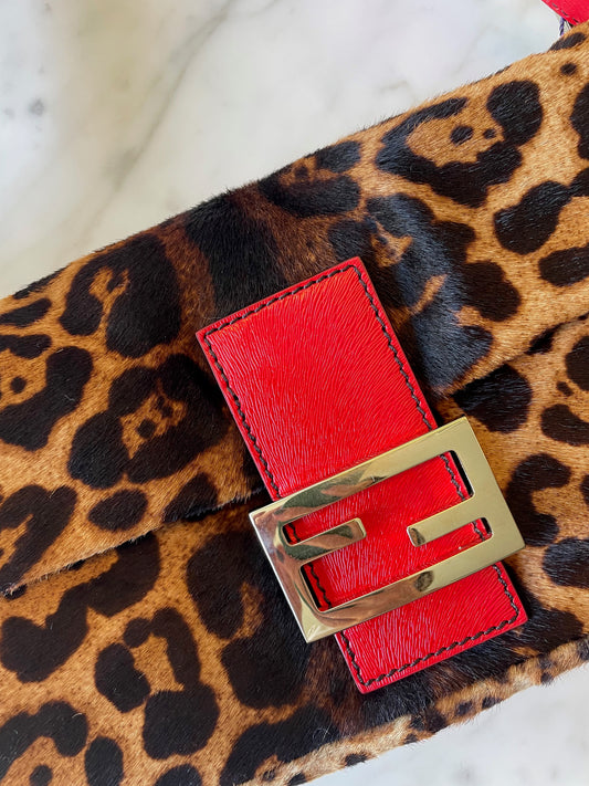Fendi Leopard Print and Red Leather Baguette