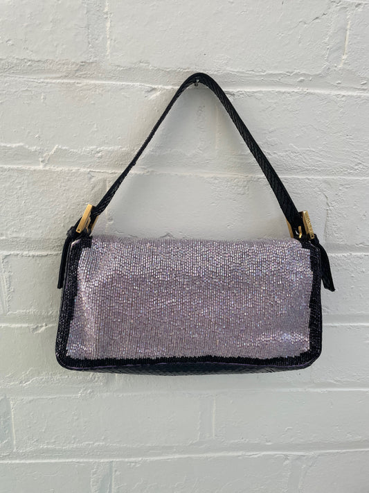 Fendi Vintage Lilac & Black Trim Beaded Baguette