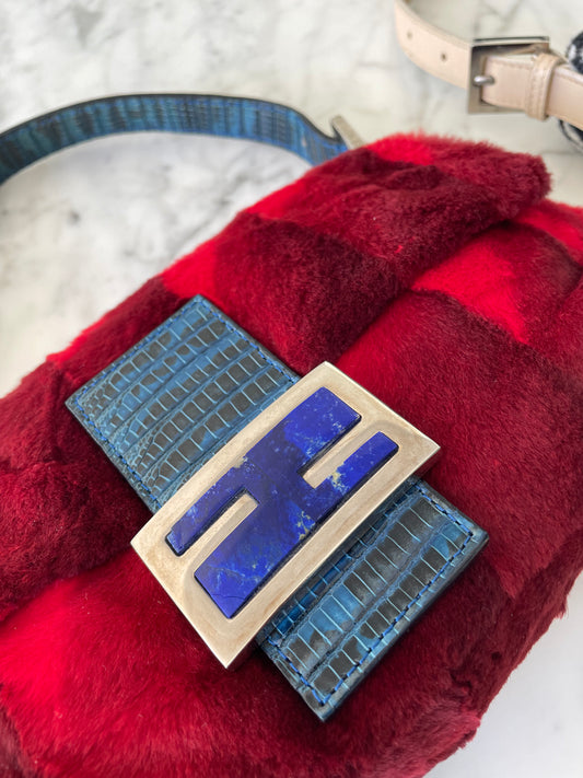 Rare Fendi Fur Baguette with Lizard Trim & Lapis Buckle