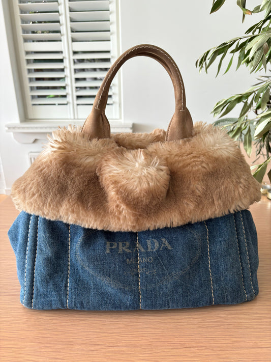 Prada Limited Edition Fur Canapa Tote Bag