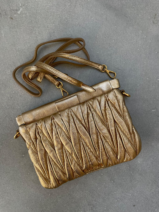 Miu Miu Matelasse Gold Calfskin Clutch / Crossbody