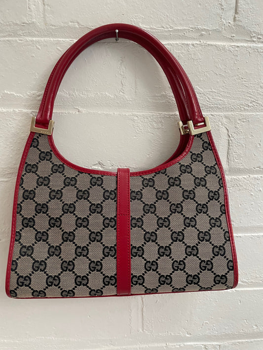 Vintage Gucci GG Canvas & Bordaux Leather Jackie Bardot Shoulder Bag