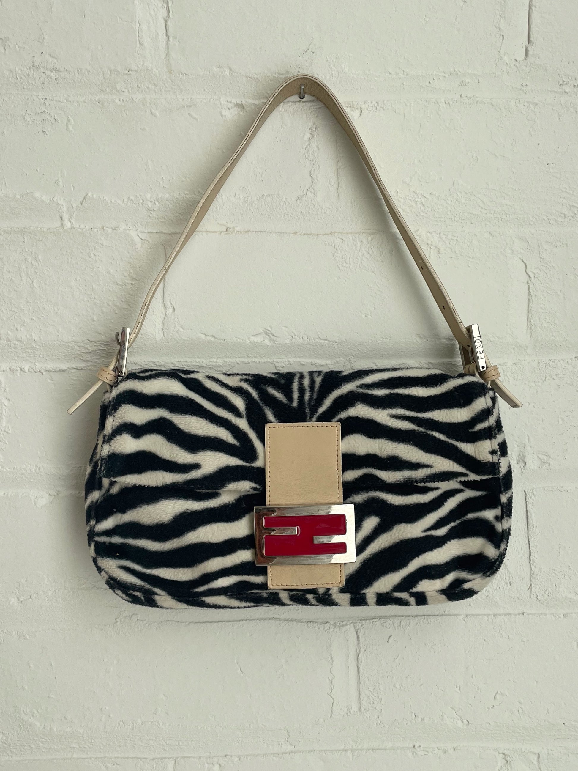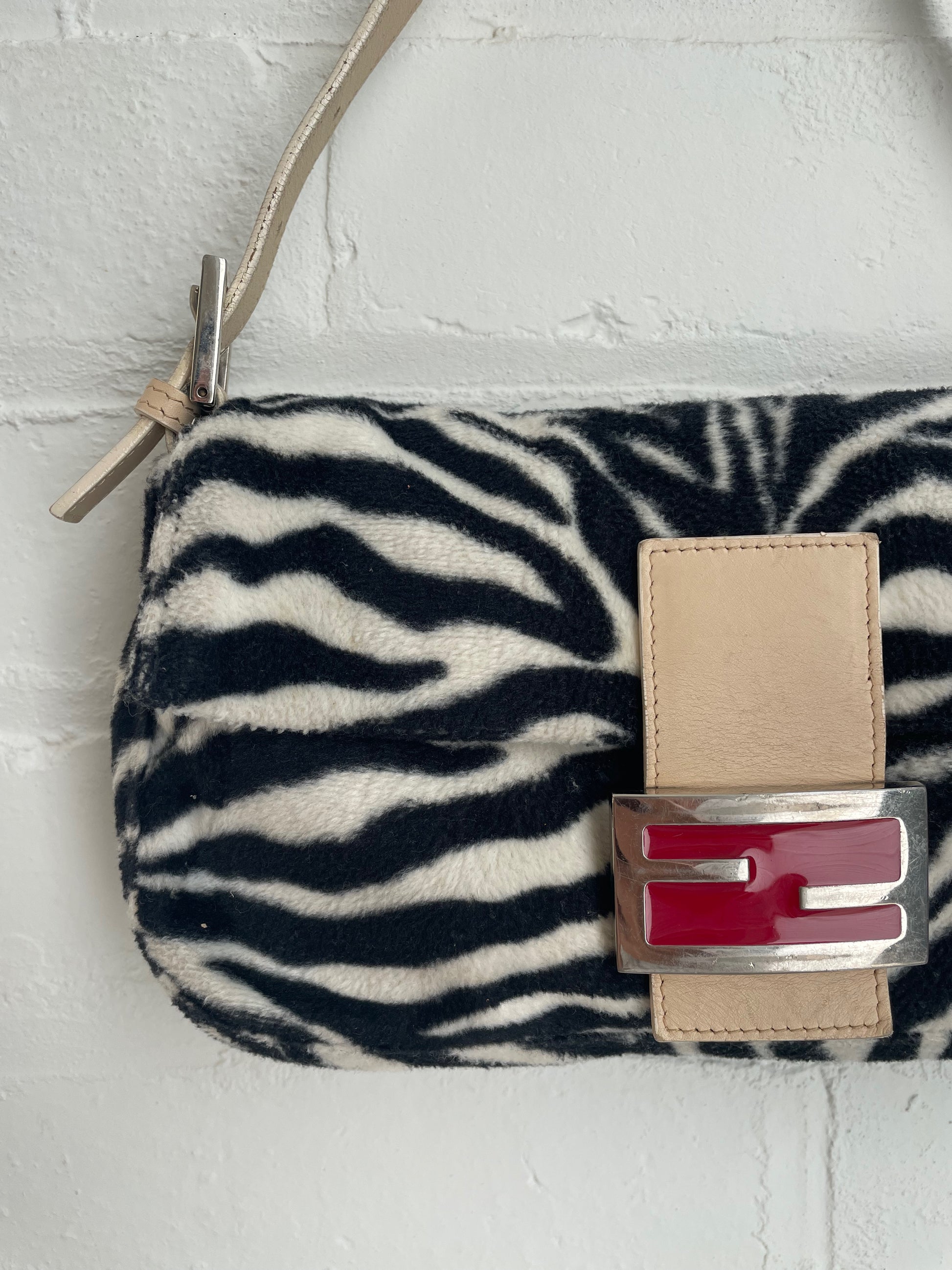 Fendi Zebra Print Baguette with Contrasting Red Buckle